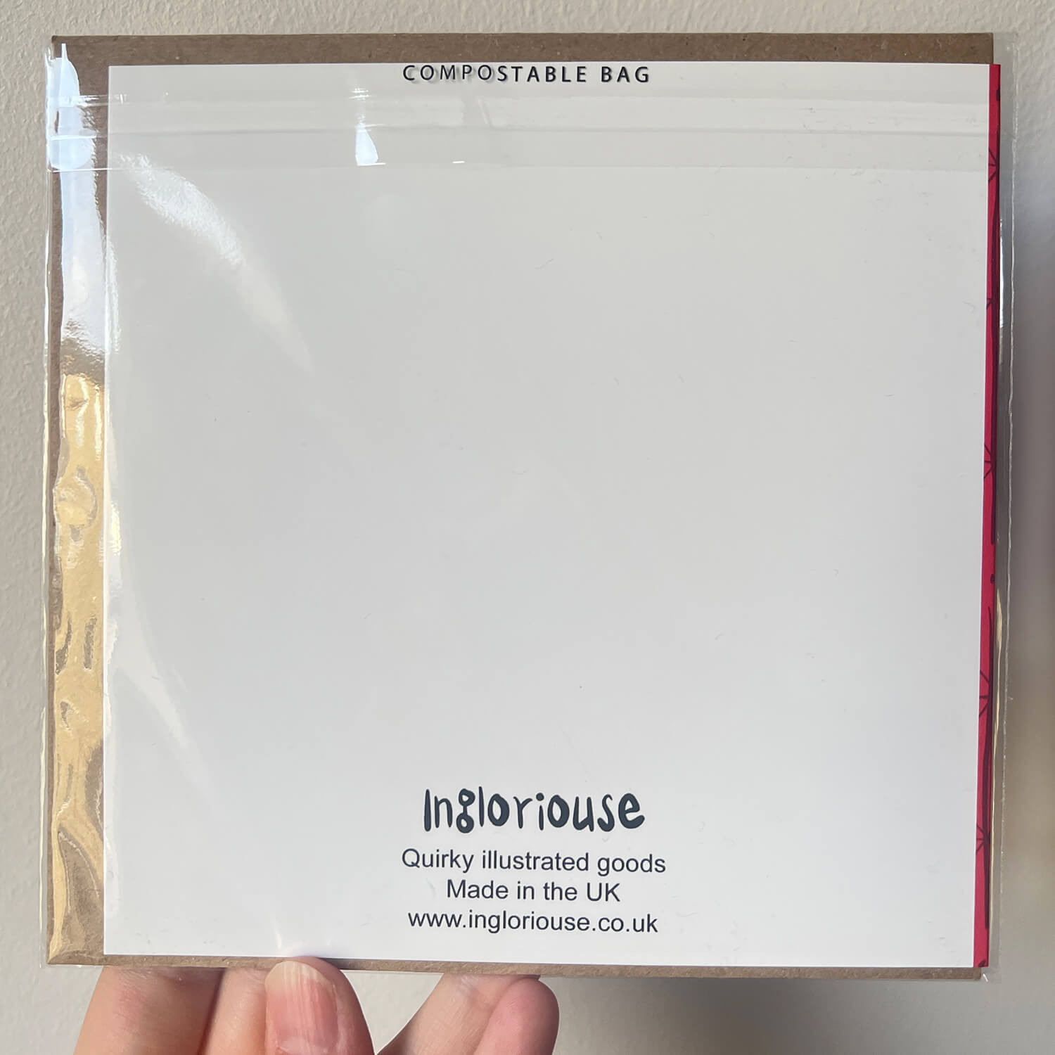 Cat lady greeting card - Red hair on light blue background (15x15cm with envelope)